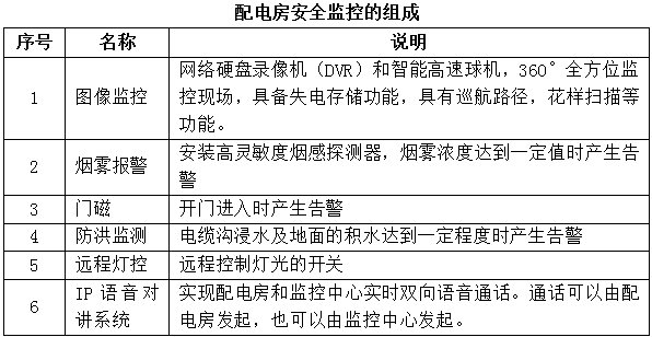開閉所、配電房一般為無人值守,除了實(shí)現(xiàn)電氣監(jiān)控功能,應(yīng)同時(shí)實(shí)現(xiàn)視頻監(jiān)控功能,以及防火、防水浸、防入侵等安全監(jiān)控功能,實(shí)施可視化運(yùn)行和安全綜合監(jiān)控。因此,需要在配電房安裝智能綜合監(jiān)控設(shè)備,通過視頻監(jiān)控綜合平臺(tái)實(shí)現(xiàn)視頻監(jiān)控、煙霧報(bào)警、防洪監(jiān)測(cè)等綜合監(jiān)控功能。其他的一些智能監(jiān)控功能也是必須的,包括遠(yuǎn)程燈光控制、語音對(duì)講等。