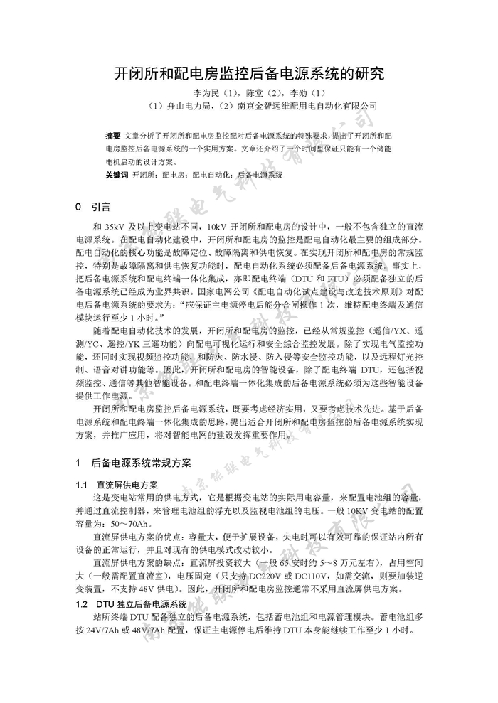 開閉所和配電房監(jiān)控后備電源系統(tǒng)的研究